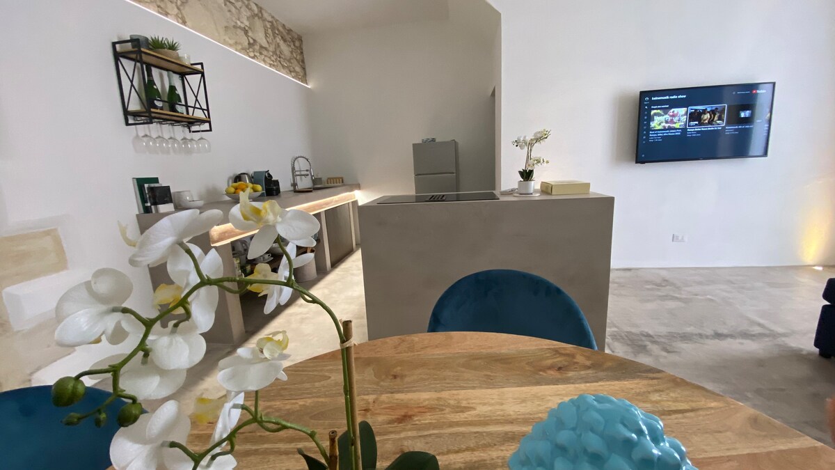 Dionisio 6 is an elegant, cozy and warm ground floor apartment, located in the Jewish neighbourhood of "La Giudecca" in the heart of ORTIGIA, just 50 mt from the sea. Our loft has been completely renovated in 2021 through a careful conservative restoration using the highest quality materials in order to respect the characteristics of the ancient building in which it is located. Functionality and design have been mixed with the antiquity of the architectural structure.