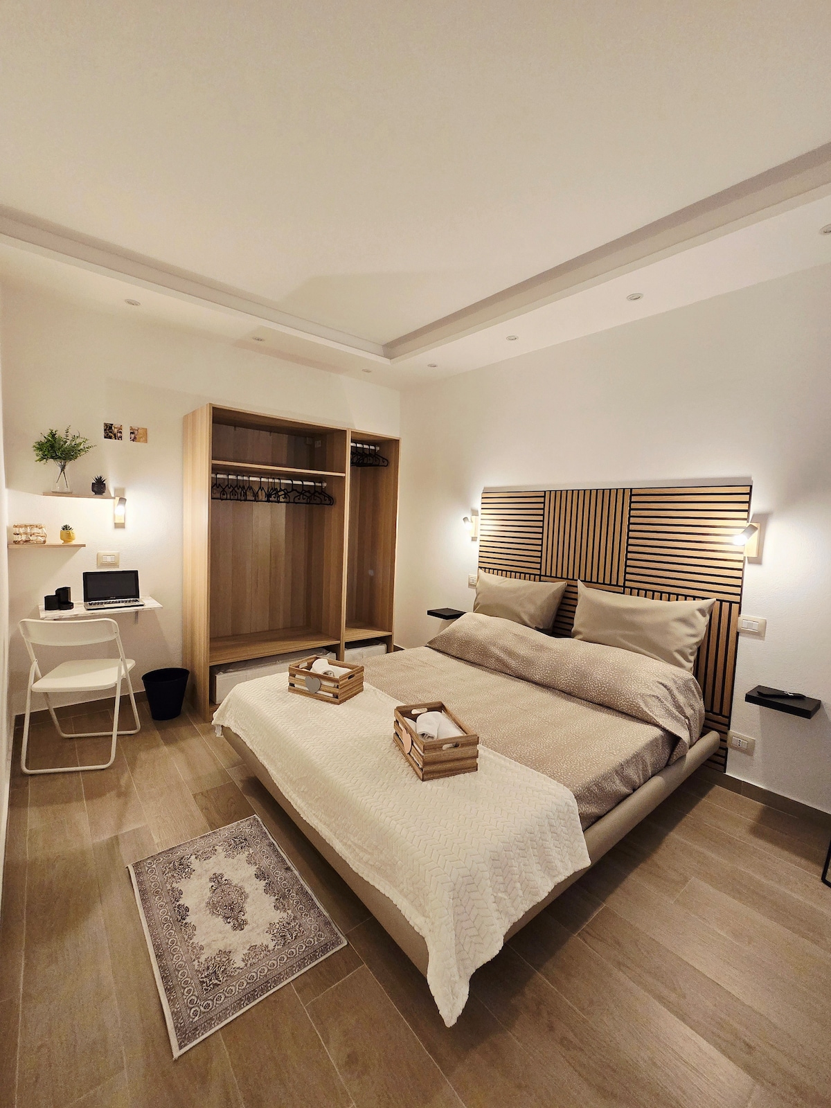 Enjoy your vacation in this stylish designer space in the city center, completed in July 2023. Composed of a King size bedroom, comfy living room, dining room, terrace with hot tub, a fully equipped kitchen and bathroom with a walk-in rain shower. Stay in style and luxury within the historic area of Ortigia and walking distance to all shops, restaurants and a 2 minute walk to the Ionian sea. Adorned with elegant furnishings and art with modern appliances to create a classic and contemporary mix.