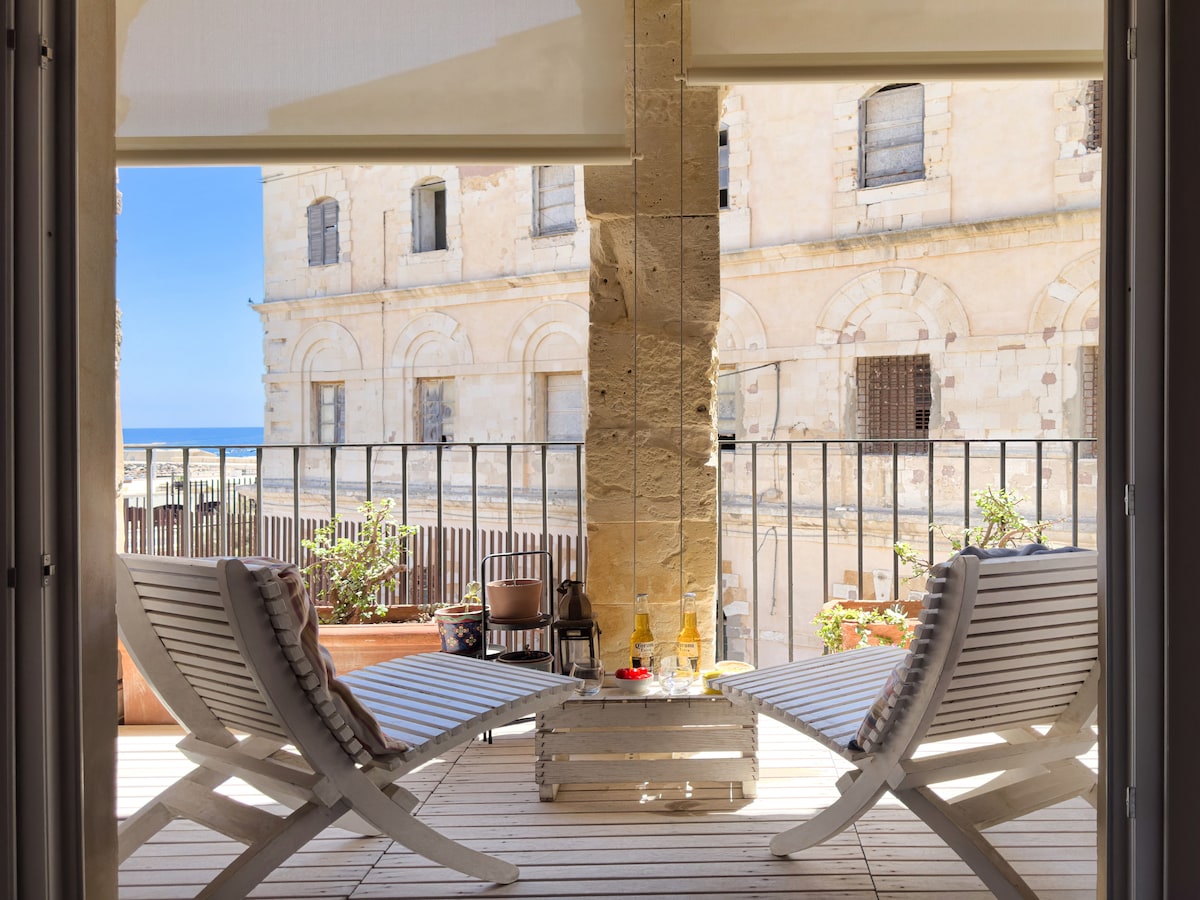 Seabreeze is on the water and you can swim right below the flat. A view of Ortigia, only 20 min by foot. The only noise you hear are the waves. Early birds will enjoy beautiful sunrises or relax after a day of sightseeing on the balcony sipping an aperitivo. Art and culture, bars, restaurants and a supermarket are just a short distance by foot. You’ll love the place because of the views, the ambiance, the location, and the balcony. Parking is fairly easy. PLEASE read House Rules before booking