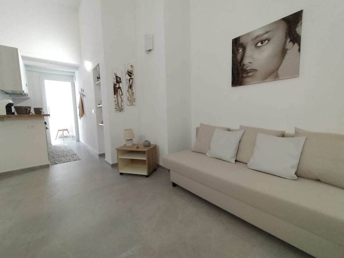Situata sul mare, sulla spiaggia cristallina delle antiche mura di Tramontana, Be Mediterraneo è un’abitazione di 80 mq, ad uso esclusivo, fronte spiaggia e nel cuore del centro storico di Trapani. La casa dispone di cucina con zona pranzo, soggiorno, camera, bagno e seconda cameretta. L'appartamento si trova a 50 mt da ristoranti, market e dista 8 min. a piedi dall'imbarco per le isole Egadi e dalla stazione bus. Potrete fare il bagno proprio sotto casa visto che si trova letteralmente sul mare