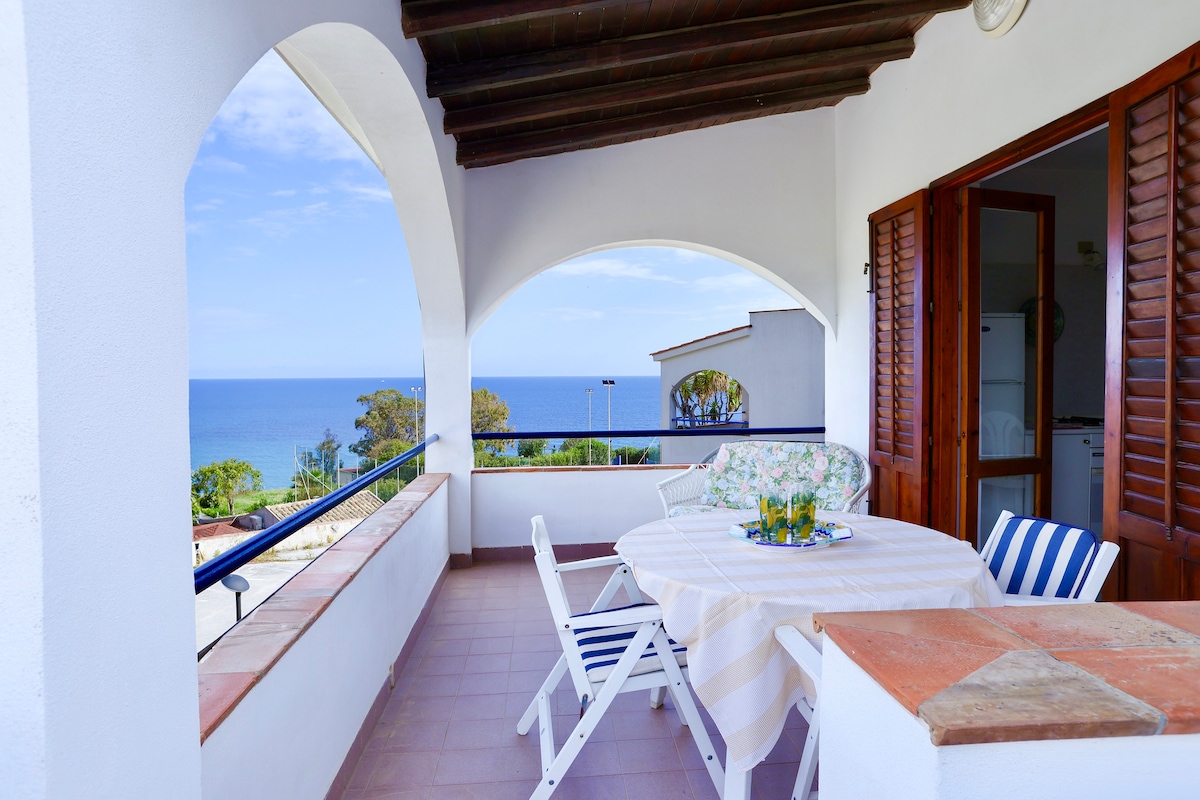 Riva Sea Apartments is a house complex located in a panoramic position just a few steps away from the golden sandy beach “Playa” in Castellammare del Golfo. The complex is made up of 10 houses. All the houses are furnished in the same style and have the same pattern. You access the house through the living room with a kitchen corner, dining table, double sofabed, tv and air conditioning. On the ground floor, you find a twin bedroom and a bathroom with a shower.