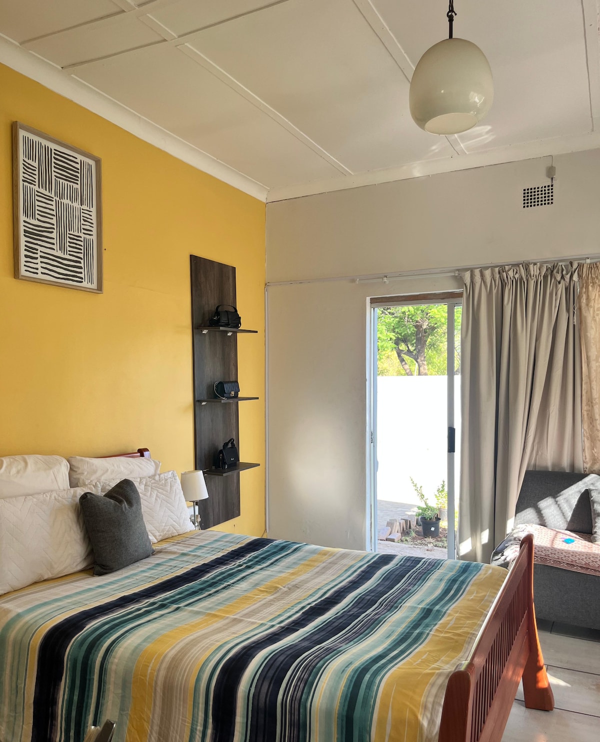 The furnished self-catering unit is spacious and has a bedroom with a queen size bed, bathroom and separate living space with couch, TV, kitchenette. A solar system - no loadshedding! A camping cot is available and a single bed can be put in on request at an additional cost. All the amenities necessary for a short stay. It is situated 400m from the Afridome and 2 km from the river/Breë Street where you can enjoy our beautiful town with a variety of galleries, antique shops. restaurants.