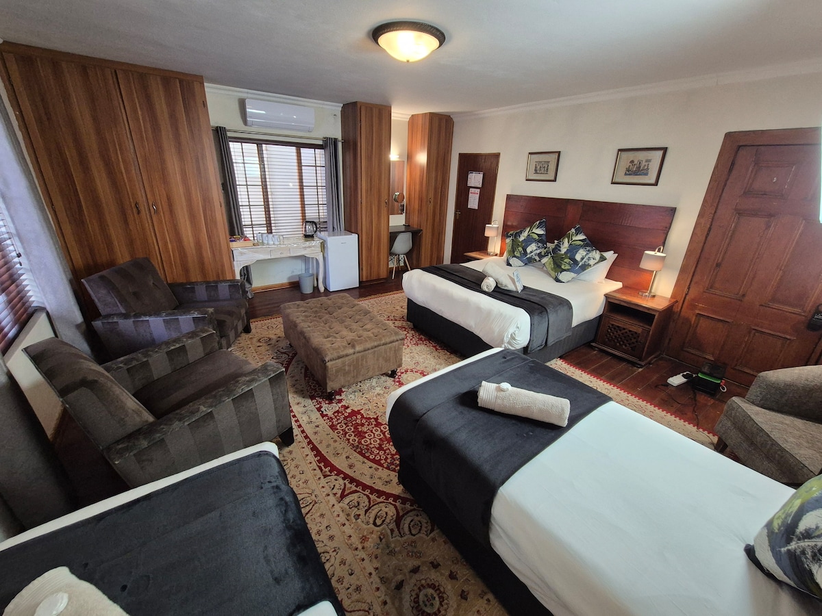 Luxury Family Room with Private Bathroom - Amenities include safe covered parking, uncapped Wi-Fi,air-conditioning, safe,TV (Netflix). Access to the living room (microwave and dining cutlery), garden, patio, glass gazebo, and a large swimming pool.
