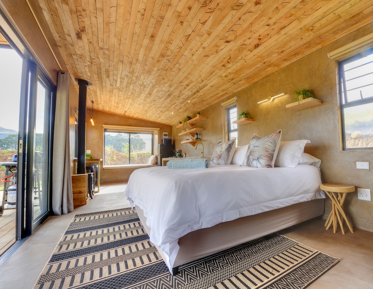 Spioenkop Eco Cabin is situated on a working cattle farm, just outside of Reddersburg, that offers you a sense of calm and tranquility. An off-the-grid stay that offers some of the most beautiful sunsets you will find, overlooking the Free State plains. The cabin was thoughtfully designed and furnished to ensure upmost comfort and views from all angles.