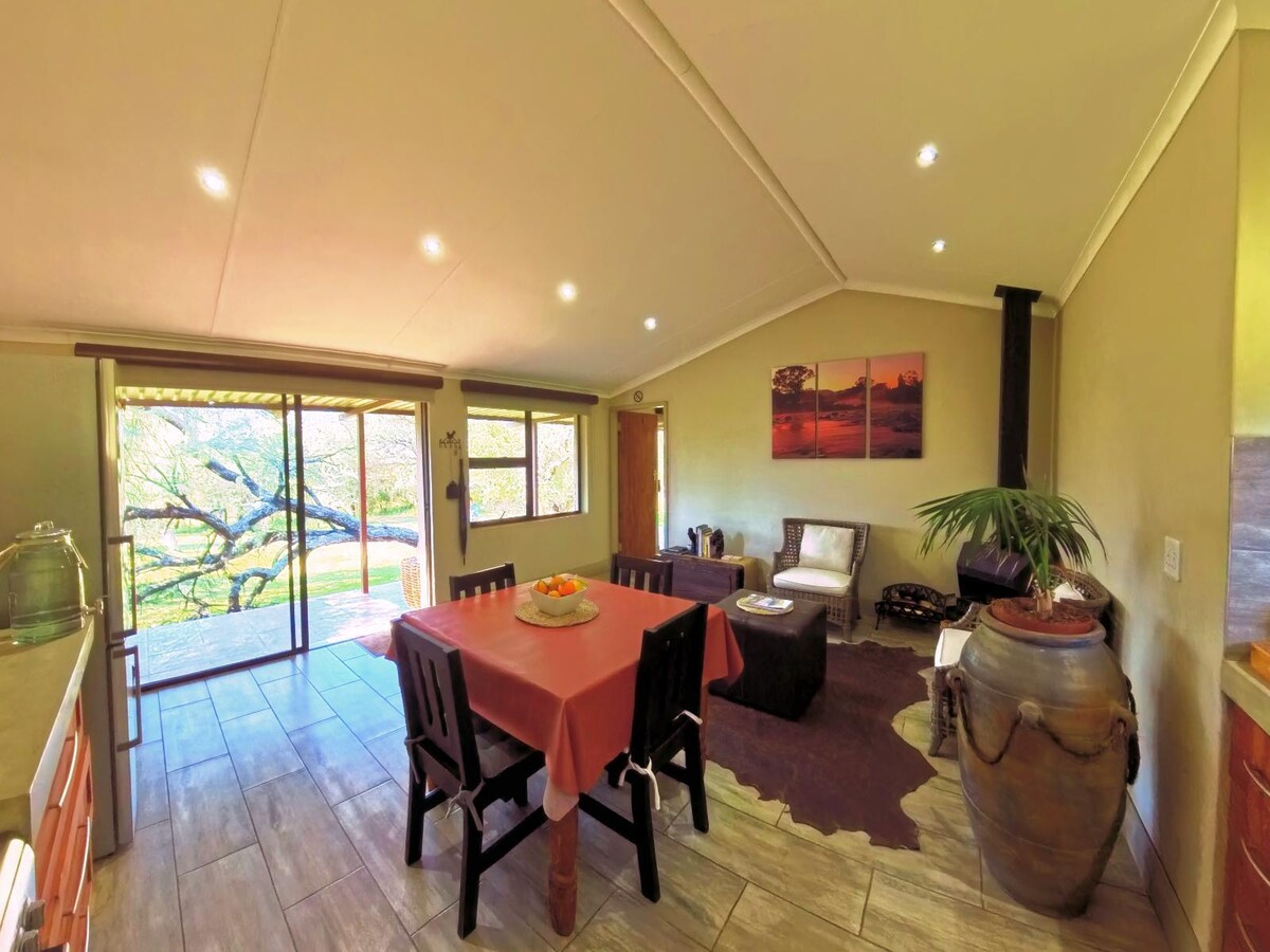 Hillside Cottage is a spacious 4-sleeper with mountain views. Two outdoor living areas provide ample space to enjoy the quiet countryside and scenery. Hillside Cottage is part of Ledges Retreat, a small guest farm in the Northern Drakensberg, located in a picturesque, peaceful valley. We are close to the Royal Natal National Park - home to the Tugela Falls and Amphitheatre. Please note: We are in Northern Drakensberg (not Bergville) near Cavern Resort. Pls search Ledges Retreat to find us.