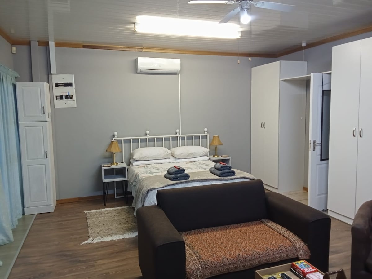 Spacious luxurious cabaña (cottage) centrally located in Potchefstroom 2,8km NWU main-gate 4km PUKKE HP Institute 1,3km Mooi RiverJunction (Woolworths/Checkers/Dischem) 3,6km MooiMed 5km McArthur Stadium 6,6km Mooi River Mall Spur across the road 2bedrooms+2bathrooms Stylishly & convenience cottage in 24h security complex, private entrance, safe parking Open-plan living & fully equipped self catering kitchen Nespresso machine FreeWifi OutdoorBraai +Veranda OutdoorGym BackUpGenerator