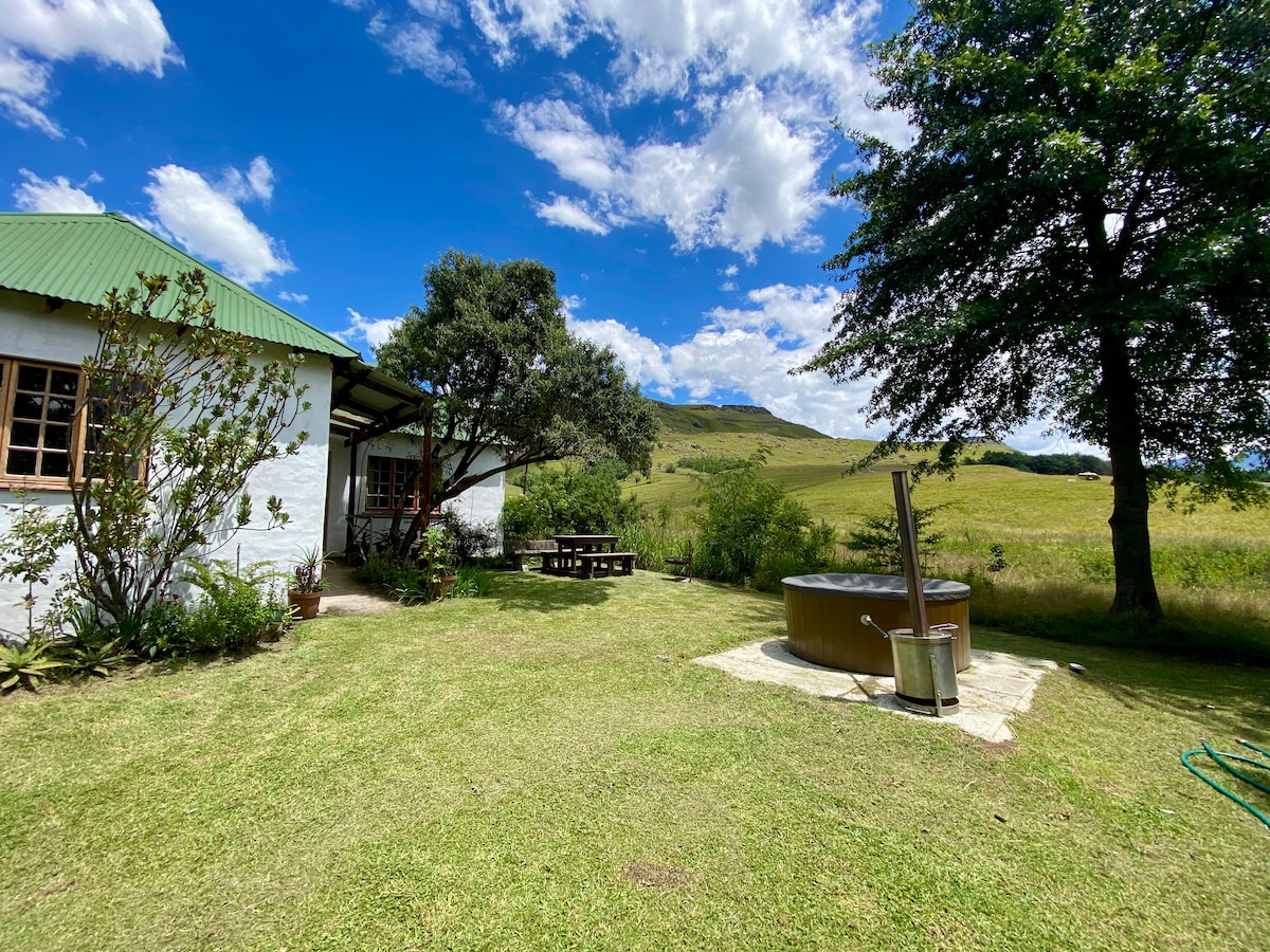 Splashy Fen Cottage is a secluded thatched property on Splashy Fen Farm, home to the famous music festival. If you’re looking for peace and solitude with spectacular views of the Drakensburg mountains, lovely spots for swimming and tubing and fantastic hiking and birding, this is the place! The cottage sleeps 6 people in 3 bedrooms, plus an additional 4 people on a mezzanine which has 3 further beds and a pull out mattress. Guests have exclusive use of the property. MAXIMUM 2 DOGS ALLOWED