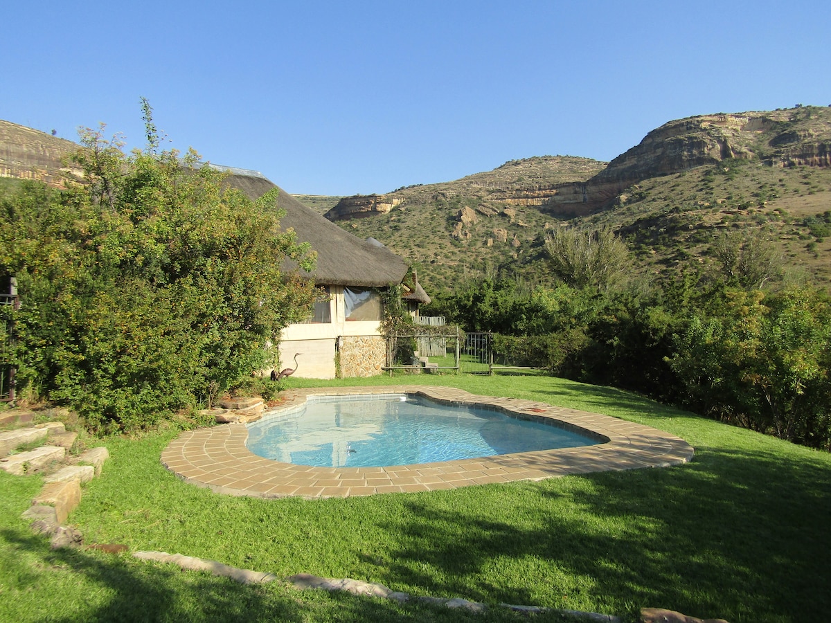 Celtis cottage overlooks Bell Park Dam with magnificent views of Champagne Castle and Cathkin Peak forming part of the renowned Drakensburg World Heritage site. You'll love the outdoor space offering a quiet, relaxed and comfortable stay. The cottage is suitable for couples and families (with kids).