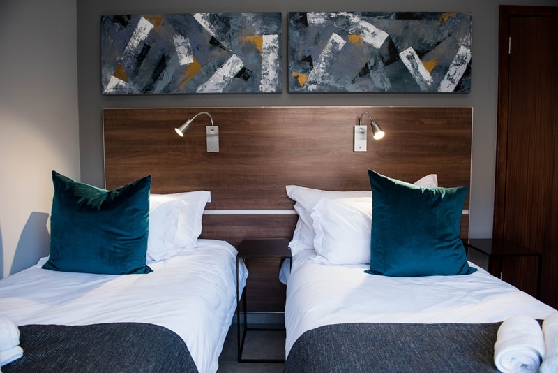 Room 8 is the last of the 3 rooms that are slightly separate from the main guesthouse. It faces north onto the internal parking area and is further away from the activities of the guesthouse which makes it ideal for the business traveller who needs a private, peaceful space to work and rest in. This room is perfect for a business traveller or a couple traveling together, two friends or family members who wish to share a bedroom.
