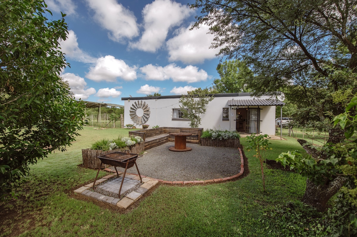 The ideal place for a stay over on your way to your holiday destination only 7km from the N1 near Bloemfontein. Relax with the whole family at this peaceful place to stay in the fully equipped self catering little house. The enclosed yard will secure your children. With a solar system and battery backup load shedding does not exist in our frame of mind. Admire the sunset while sitting around the fire pit and if you are lucky you will see some game in the game camp.