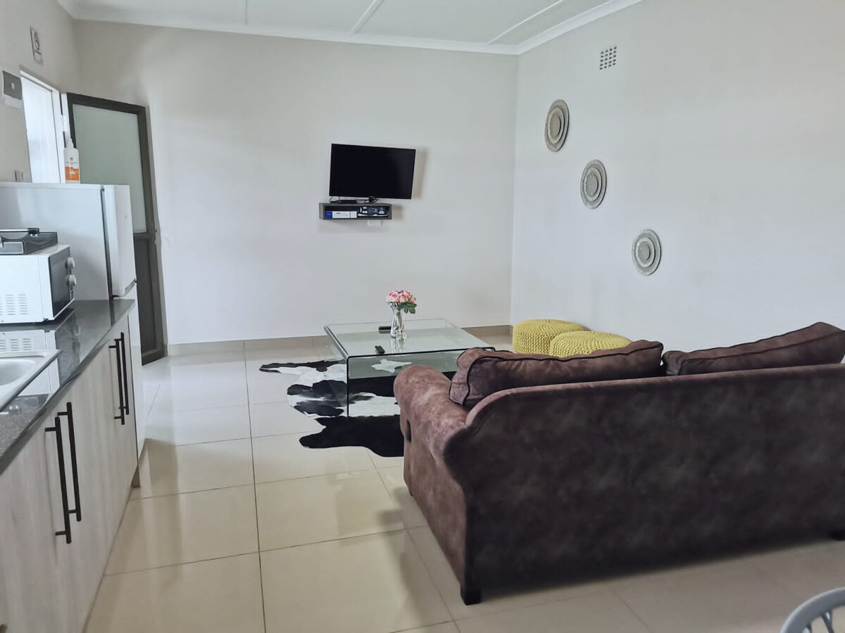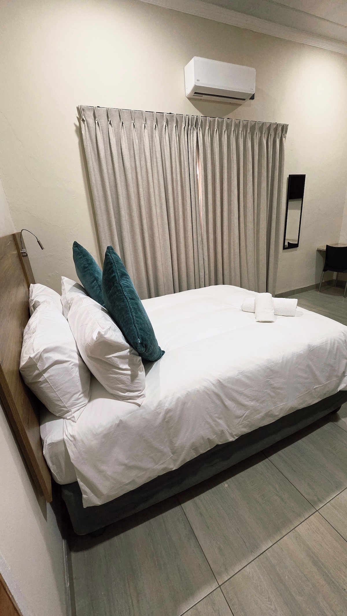 This spacious self catering 1 bedroom suite, is one of 7 units on the property. Truly fit for royalty, boasting an elegant lounge, with dining siting and kitchen. The bedroom is huge, with King size bed. All units very peaceful, elegant and spacious. Ready to welcome the traveller for work or leisure.