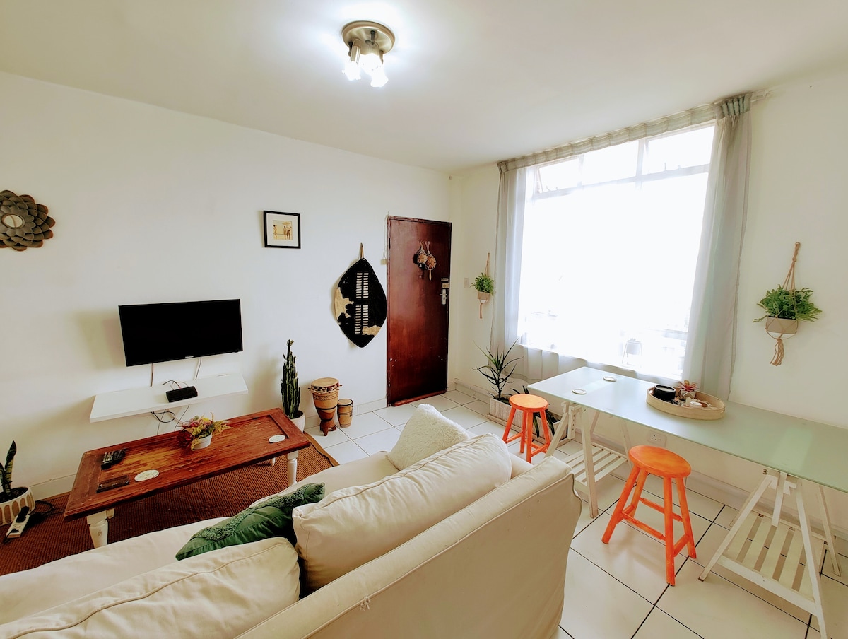 Newly renovated with all the comforts of home, relax with an espresso coffee in our beautifully decorated apartment with views of the Durban harbor and ships. You are within walking distance to the brand-new Passenger Terminal, multiple restaurants and bars as well as Ushaka Marine World and the beachfront promenade. The apartment kitchen is fitted with a fridge/freezer, a washing machine, microwave, kettle, toaster and a coffee machine. There is a fitted oven and electric hob and all basic commodities are supplied for guests. (Fresh ground coffee, tea, home made rusks, milk and sugar). The apartment is also equipped with all utensils, pots, pans, crockery, cutlery, glasses and extra sundries (serving platters, salad bowls, champagne bucket etc). The main room has a queen bed (2 people) and there is a single sleeper couch (1 person) with bedding (SNooZA) in the lounge (A maximum of 3 people can be accommodated). The SNooZA folds back into a neat ottoman when you don't need it. The apartment includes a private balcony for guests. IMPORTANT: The apartment is self sufficient and has everything you need. If there is anything specific you require please send us an enquiry. Please note that the apartment is not serviced daily. The service charge is for cleaning and servicing the apartment after checkout. If you require housekeeping or cleaning there is an additional housekeeping service available for cleaning, washing and or ironing which you may request as needed. This is an additional cost. Check in and check out times are a guide and are flexible provided the apartment is serviced and ready and can be made available. The apartment is in Durban Point Waterfront, a managed precinct which is fast developing into a trendy, sought-after area. It's close to restaurants, a cool new brewery, coffee shops and bars, and is a short beautiful walk to the beach, brand new Cruise Passenger Terminal, Durban Promenade, and Ushaka Marine World. There is an allocated safe, covered basement parking for the apartment. If you don't have a car you can utilise Uber, but there is also a regular and reliable bus service available daily at the Signal Road pickup point. (see map) The following are also supplied for your convenience: - A digital safe - Picnic basket - Beach towels and beach picnic blanket (beach umbrellas are also available on request) All windows are fitted with security guards and the building has 24 hr security and cctv for your safety If you require any additional request, have a special occasion or need any provision please let us know and we will do our best to accommodate you on check in. Important: Out of respect for neighbours; loud music, parties/events and charcoal braais are not permitted. A copy of the Body Corporate rules are available in the guest file.
