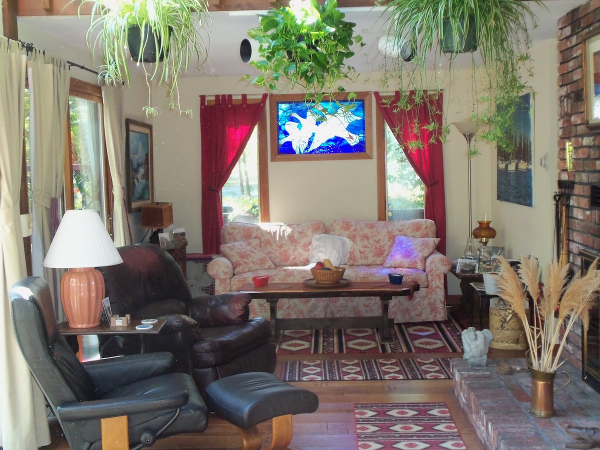 My home is located in a small town on a dirt road and very private. The rt 1 coast/ocean is about 25 minutes away and offers lighthouses, lobster and Maine hospitality. This guest room has a full size bed that is stacked with pillows and an antique quilt, dresser and closet space. The bathroom boasts of a shower as well as a claw foot bathtub should you wish to lay back and relax. There is a television, and an air conditioner in the warmer months as well as a ceiling fan as an alternative.