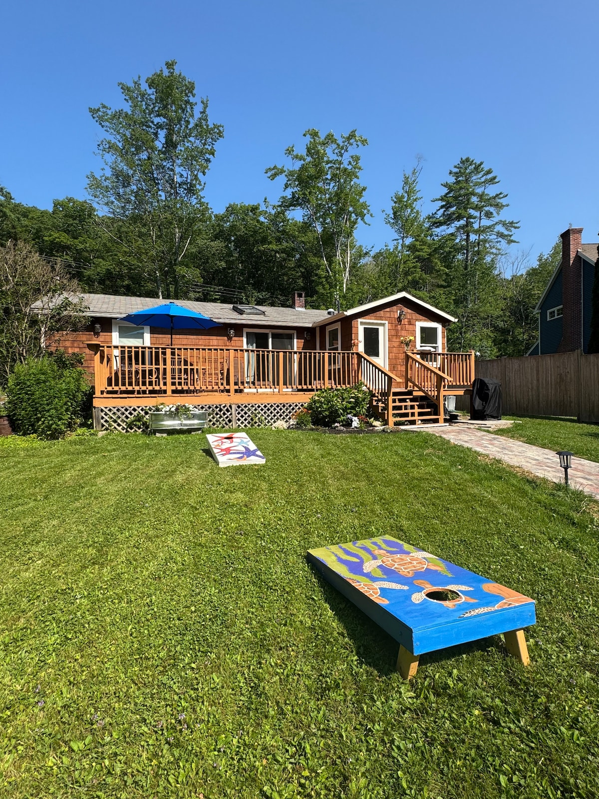 Get away with your whole family at this peaceful home in the country. Hear the frogs chirping in the pond, birds tweeting in the treetops and watch chickens roam around. Enjoy the clear, starry nights while relaxing in the hot tub or cozying up by the fire. Centrally located between coast and mountains. Head a hour north to take the family hiking or on the slopes to enjoy the mountains. Head 40 minutes south to take in the coast and see the iconic Maine lighthouse.