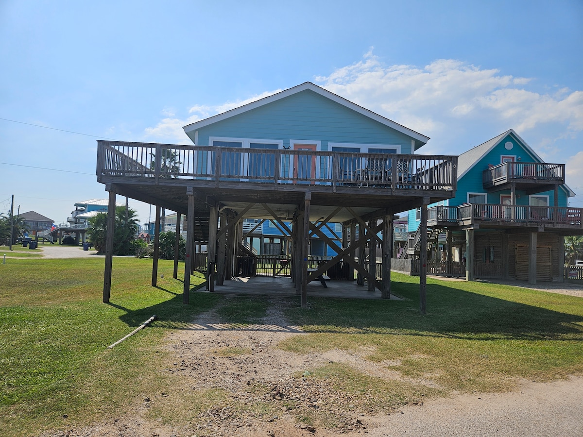 NEW Beachfront Construction! Truly a Unicorn:🦄 LOCATION, LUXURY, and So Nice to Have NEW! Located steps away from the best restaurants and beach in Surfside! Enjoy hammocks and games under the house. Climb the steps to an awesome shaded deck with views from San Luis Pass all the way to the Jetty! More than 180 degree unobstructed views. Bedrooms open to SunDeck and stargazing with fire 🔥 pit YouTube Beachfront Luxe for video $125 cleaning fee and only $75 total for up to 2 pets for whole stay!