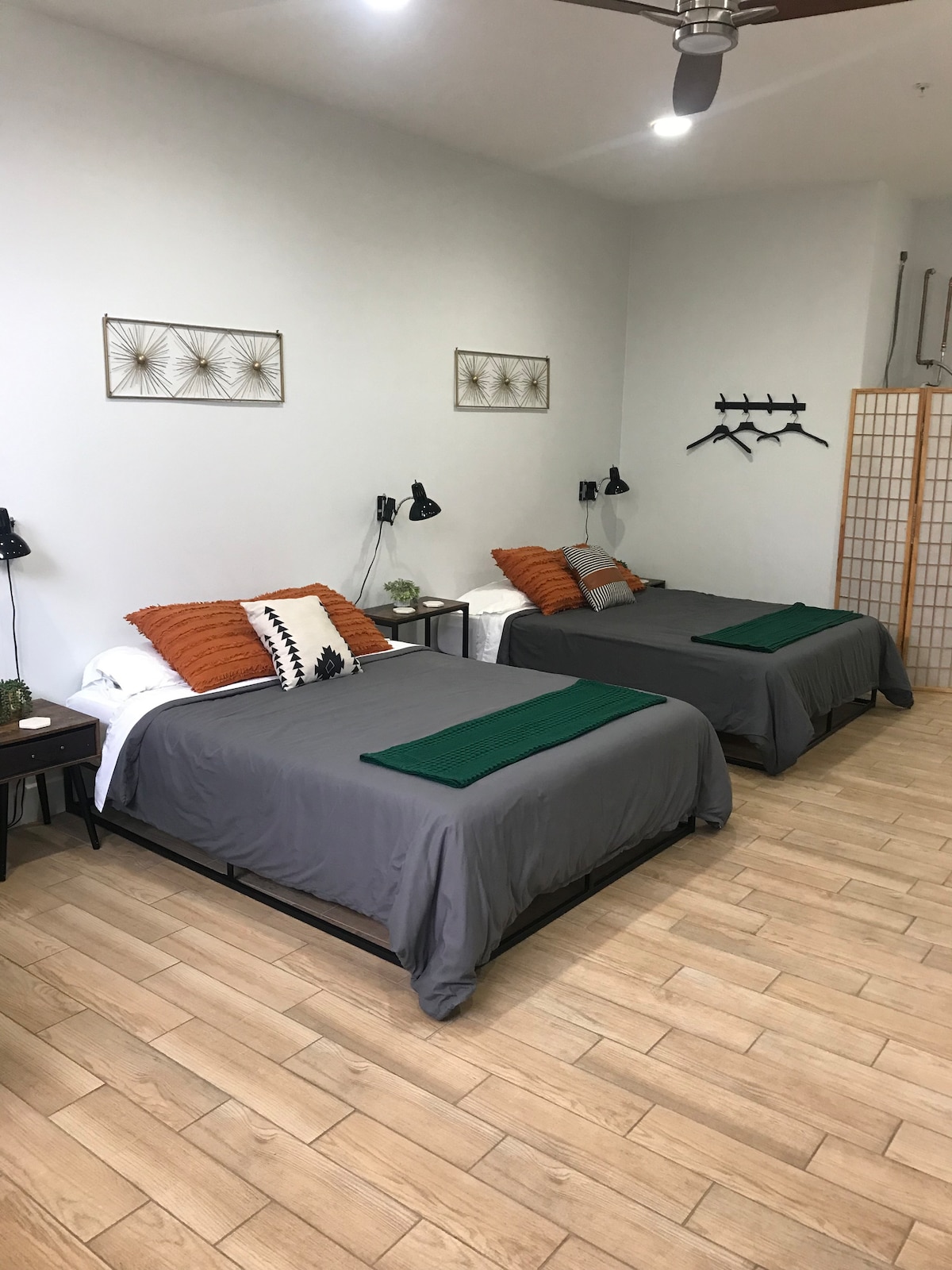 This open concept 1200+ sq foot studio suite encompasses the entire 2nd floor of the Roomers House, with amazing views of the gulf, pleasure pier and seawall blvd. This suite features a full kitchen, amazing bath (with large walk in shower), washer/dryer, 65” TV with Hulu Live TV, adjustable Mini Split HVAC, high speed Wi-Fi, two private decks, assigned private parking & sleeps up to 4 with two pillow top king sized beds.