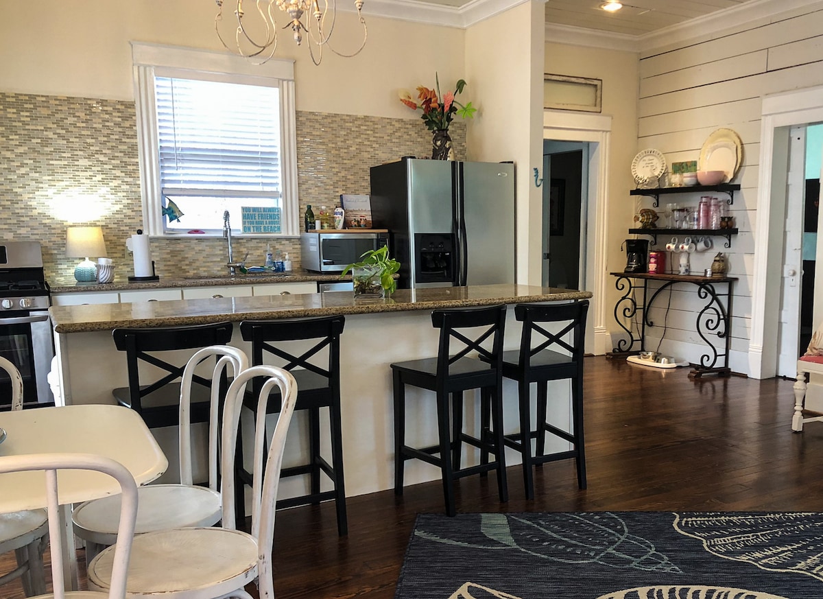 Trust us to help you build wonderful memories on magical Galveston Island. From infants to grandparents, we strive to satisfy your whole family! Please read the 5-star reviews left by our many satisfied guests. We are centrally located just three minutes from the beach and all the attractions and dining on the Seawall. We are 10 minutes from downtown Galveston and the historic Strand and Arts districts. Pets are welcome! Please no smoking or vaping. Events are not permitted.