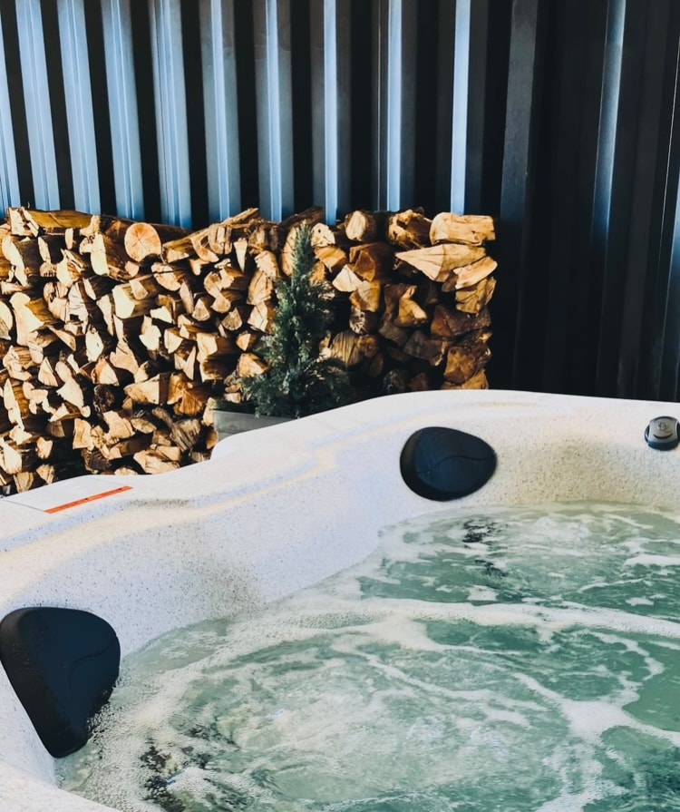 带热水浴缸的私人小木屋,位于树林中,可欣赏小湖景观