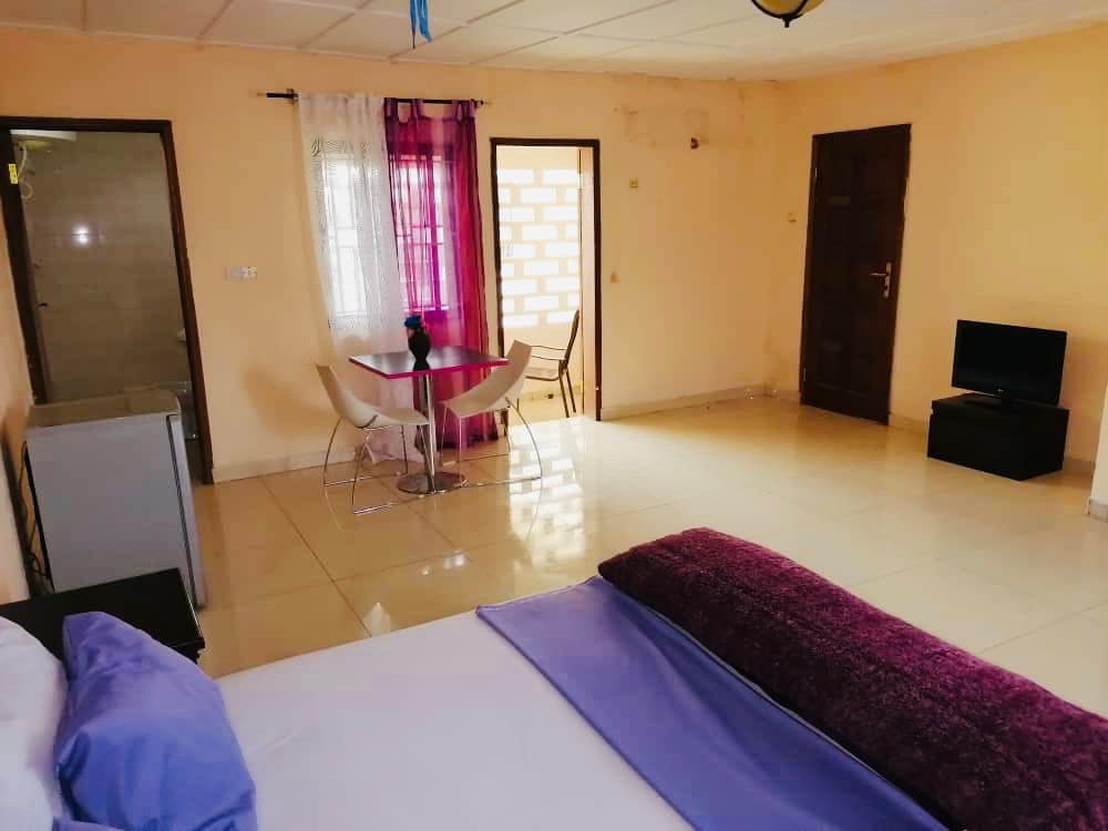 This is a bed room in a flat with a private toilet, fridge, cable TV, AC, Wi-Fi but sharing other living spaces like the living room and kitchen. All the amenities and breakfast is included in the price. It is located in a very quite and secure neighborhood with 24 hours staffing. It is ideal for short or long term stays if you live sierra Leone or you visiting from abroad for work or holiday. Back up power plant for electricity and water supply to ensure consistent electricity and hot water.