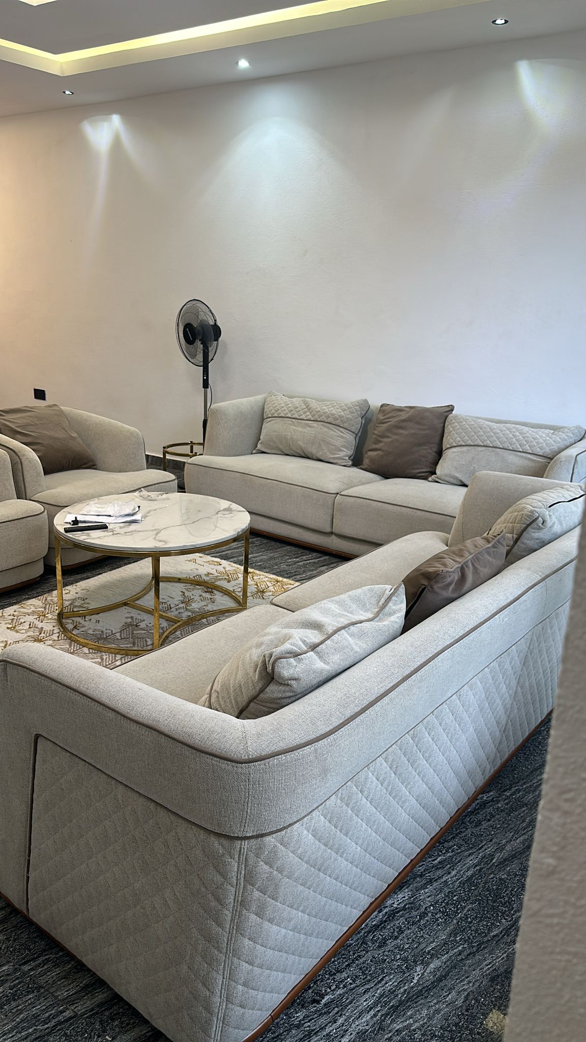 Upscale 2 bedrooms, 2 baths, fully furnished house. A prime location for vacation, worktrip, or group travel. WI-FI, smart TVs, AC units in all bdrs, living room and dining area. King bed in large Ensuite master, queen bed in guest bedroom. Kitchen with gas cooker/oven, microwave, fridge/freezer, plateware, utensils, knife set, cookware, and laundry washer. 40KVA backup generator, pipe-borne water supply in addition to 26,000 gallons water reservoir. Fenced, gated with 24/7 security.