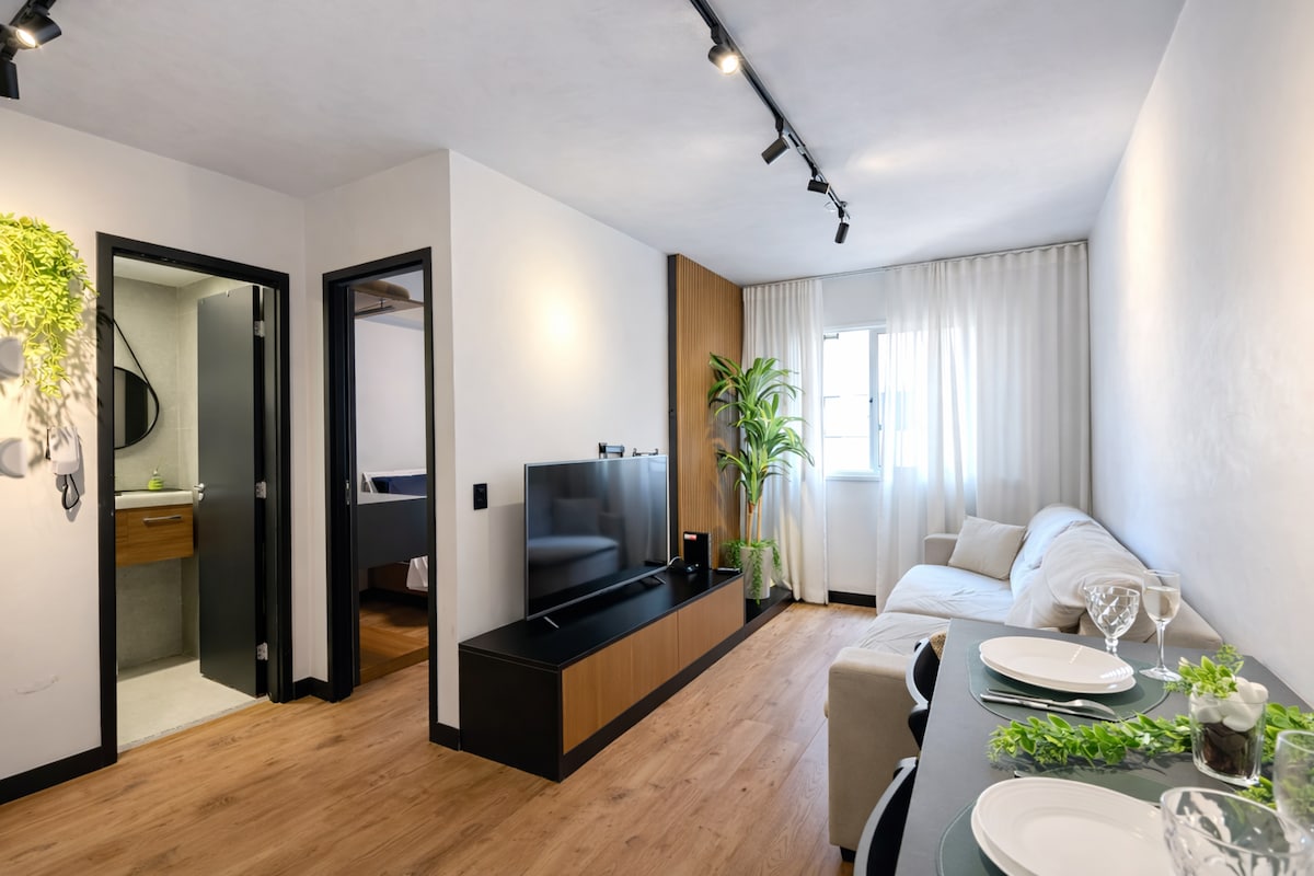 Discover your vibrant home in São Paulo, between Consolação and Higienópolis! • Modern, pet-friendly apartment, accommodating up to 6 guests • Dedicated workspace with 700 Mbps Wi-Fi • Fully equipped kitchen • Free parking • Perfect for families, groups, or remote professionals seeking style and convenience in the heart of the city