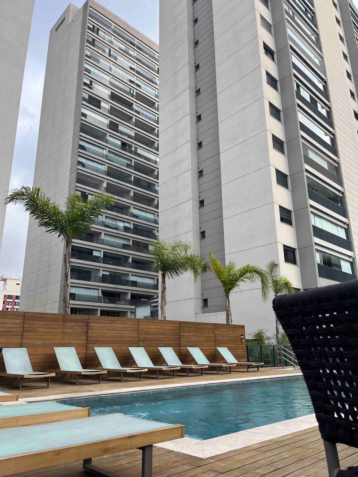 This new, well-equipped space offers a stunning urban view! Conveniently located near everything, exceptional comfort with a queen-size bed, high-quality linens, a fully equipped kitchen, an integrated balcony, air conditioning, smart TV and high-speed internet. Easily walk to parks, theaters, museums, restaurants, bars, clubs, supermarkets, pharmacies, and Frei Caneca mall. Paulista Avenue is 800m away and Sírio-Libanês Hospital is 300m away. The condominium features a rooftop pool and gym.