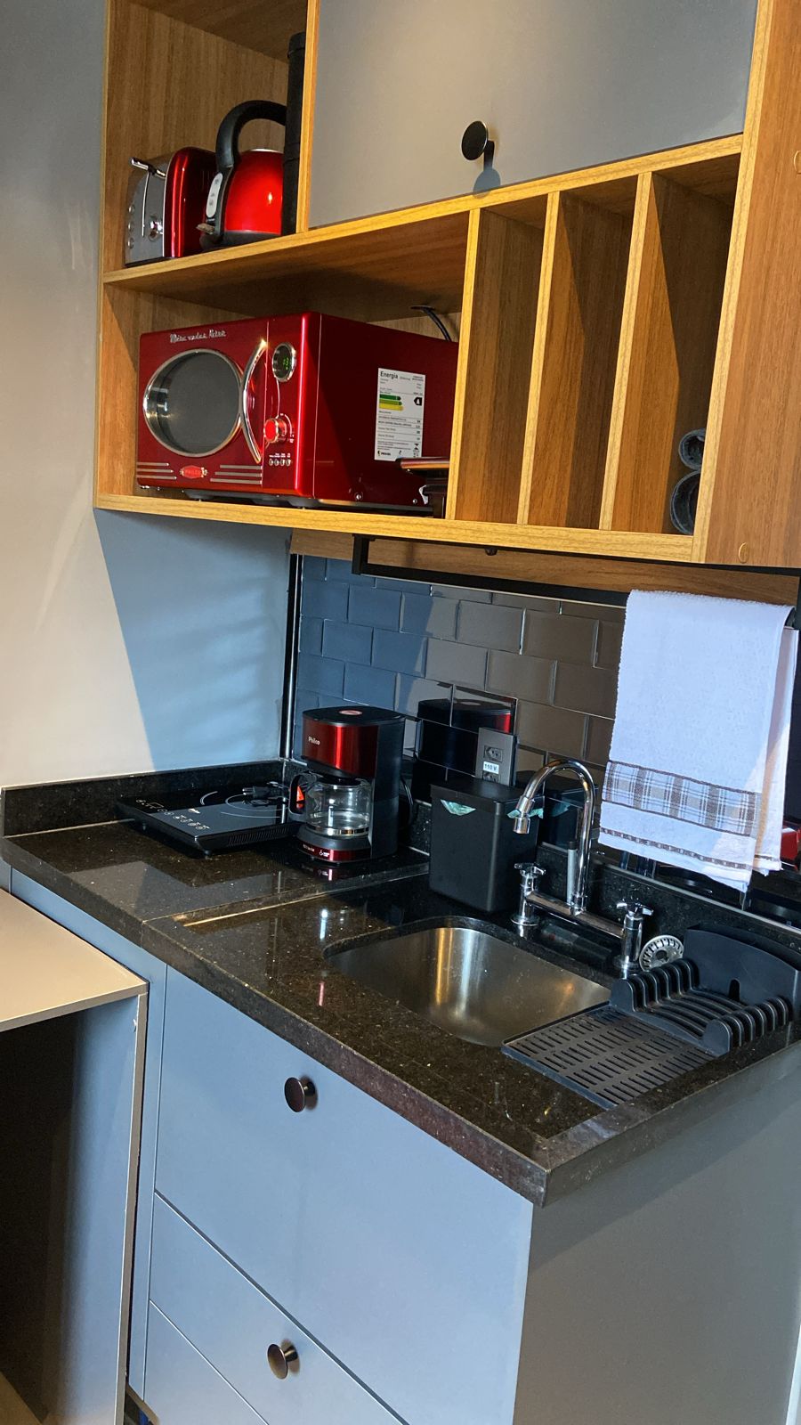 Relaxe neste espaço calmo e cheio de estilo. Meu Ap prioriza o conforto, o descanso após um dia agitado na metrópole. Ideal para até 2 pessoas, equipado com cama Queen padrão Hotel, Ar condicionado, internet 250Mb, Smart TV de 42"; além de cozinha com microondas, fogão de indução, sanduicheira, torradeira, chaleira elétrica, cafeteira e mini geladeira. Possui mesa de trabalho para 2 pessoas, com cadeiras confortáveis de couro. Você irá dormir com janelas anti-ruído e cortinas blackout 100%