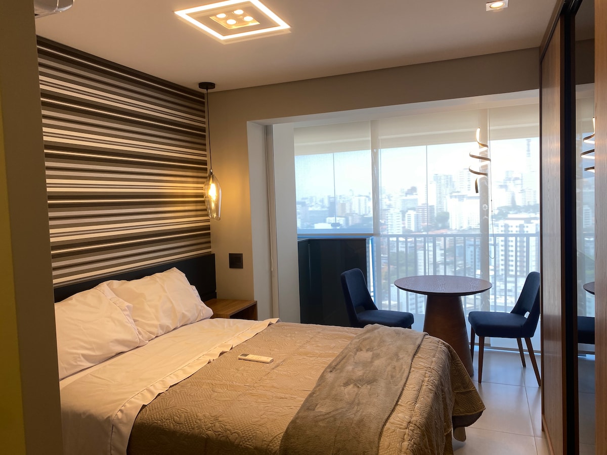 Confy design Spa apartment. You'll have your onw private sauna and ofurô with an incredible view of the São Paulo DownTown Dedicated exclusively for guests. Área privativa de 82m2 e se localiza em um edifício de construção nova, da construtora Cyrela, com acabamento em alto padrão, com segurança e portaria 24h. Há apenas 50 metros de distância há um supermercado que funciona 24h por dia, de domingo à domingo. O metrô fica na esquina, há apenas 100 metros do edifício.