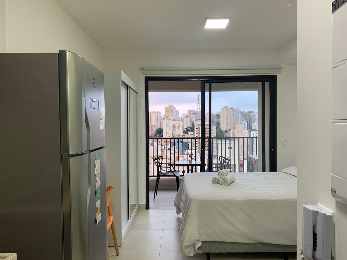 Studio charmoso com infraestrutura completa para descanso, lazer e trabalho. Foi planejado para oferecer muito conforto, pronto para atender todas as necessidades dos hospedes durante curtas ou longas estadias. Ótima localização, ideal para conhecer a cidade enquanto trabalha ou de férias. A 1 minuto a pé do Shopping Frei Caneca, a 5 a pé minutos do Metro Higienópolis-Mackenzie, a 10 minutos a pé da Avenida Paulista, próximo bares, restaurantes, lanchonetes e mercados 24h aberto.