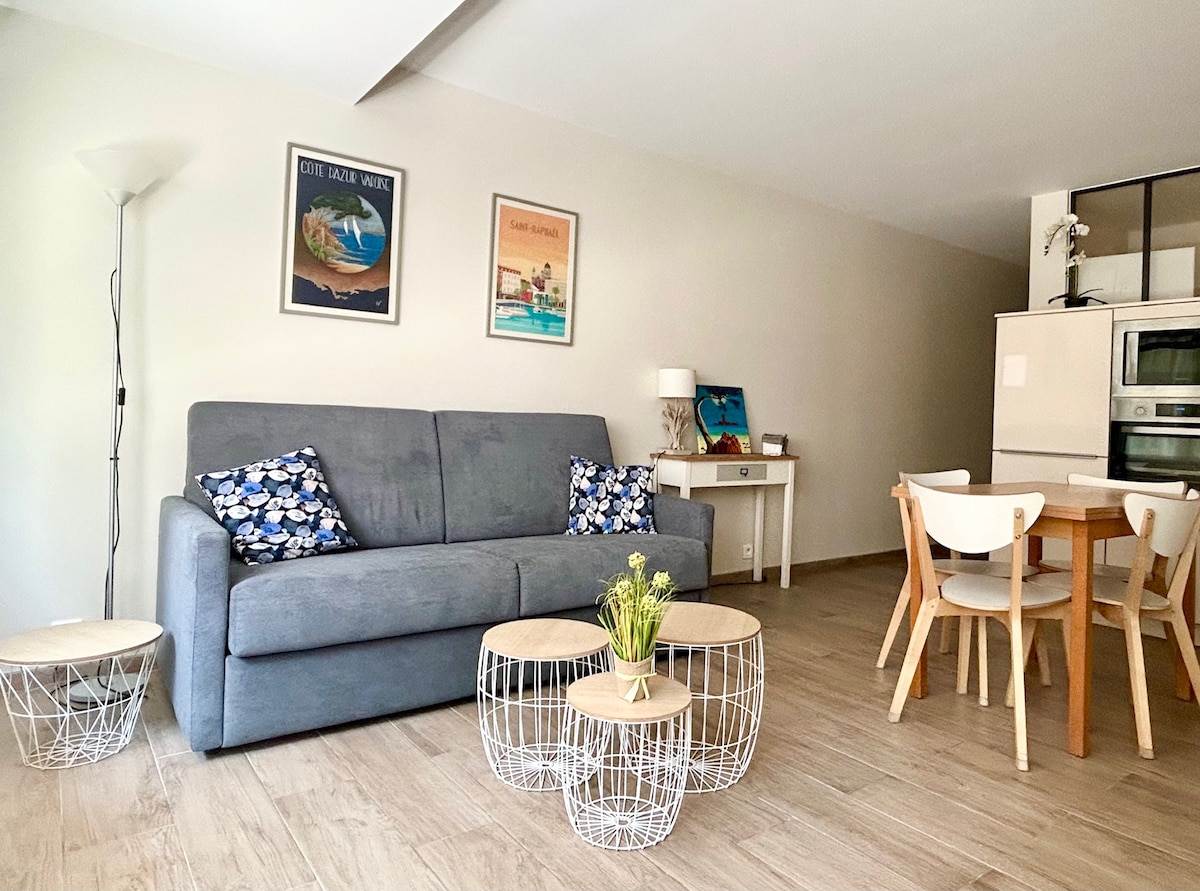 Enjoy stylish, central accommodation. Come relax and enjoy the mild climate of the Côte d'Azur! Leave your car in the private car park and set off to explore Saint-Raphaël. The city center, restaurants, beach, casino, Ferris wheel, port, markets, just 10/15 minutes on foot! The apartment, tastefully decorated, is located in a residence with swimming pool (open from May to September). Don't wait any longer to book your stay!