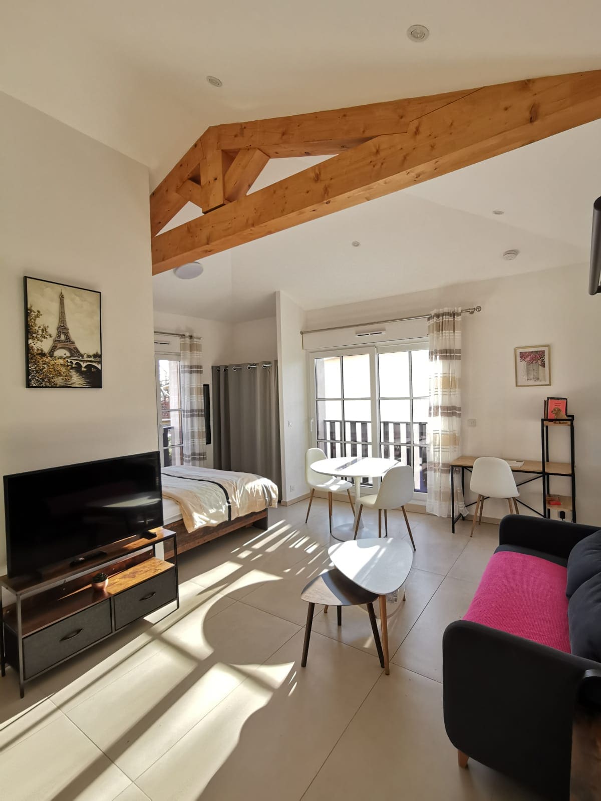 Offrez-vous une parenthèse de douceur au cœur de Port Fréjus, dans ce superbe T2 climatisé de 54 m² avec garage privé sécurisé. Plages de sable fin, Plages, Base Nature, restos et commerces à pied. Installez-vous, respirez l’air marin, vivez au rythme du port… tout simplement. Précisions importantes : Linge de lit : fourni en fonction du nombre de voyageurs, dans la limite de 2 kits maximum par séjour. Linge de bain : 2 grandes + 2 petites serviettes Animaux & fêtes : non autorisés