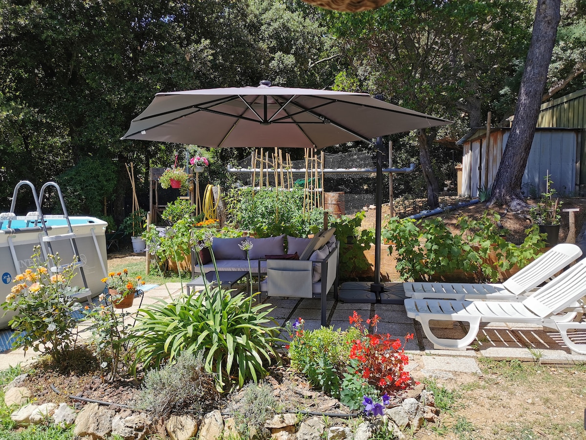 Au cœur du Massif du Tanneron, entre mimosas et forêt d'eucalyptus ,vous goûterez au calme et profiterez d'une nature colorée et odorante. Vous serez tout près des sentiers pédestres offrant des vues incroyables , et non loin de la mer (20 ' en voiture).Le logement vous apportera tout le confort nécessaire (entrée indépendante ,salle de bains privative) et vous pourrez vous détendre en dégustant au soleil votre petit- déjeuner face à un magnifique panorama. C'est un lieu paisible et convivial.