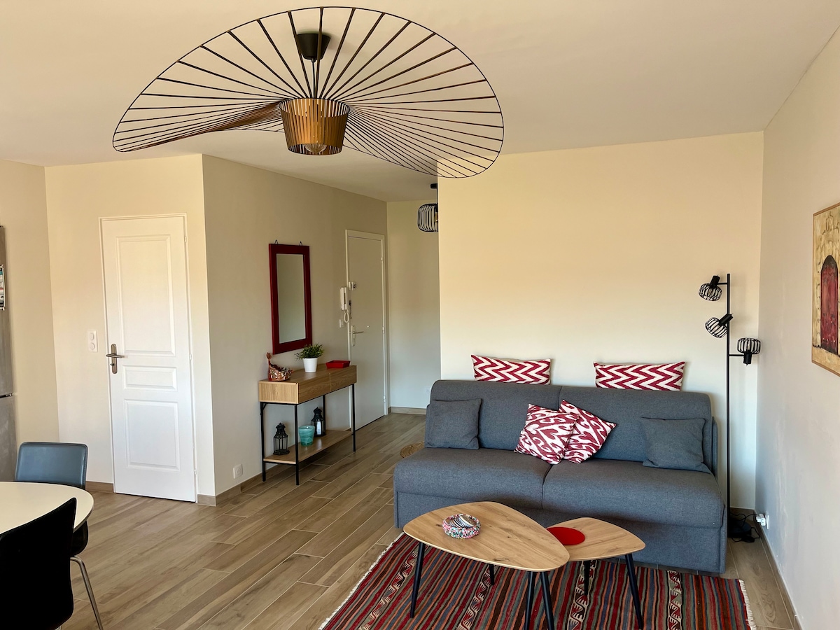Situé à Fréjus plage joli T1 de 28m2 avec loggia au 2eme étage avec ascenseur dans une petite résidence sécurisée , entièrement rénové, très agréable pour 2 adultes et éventuellement 1 enfant .A seulement 700 mètres de la plage proche des commerces de proximité (boulangerie, presse, pharmacie, supermarché) vous pourrez profiter des marchés nocturnes, animations, parc aquatique, luna parc, Casino de jeux, concerts, restaurants, et de nombreux commerces... Au plaisir de vous accueillir.