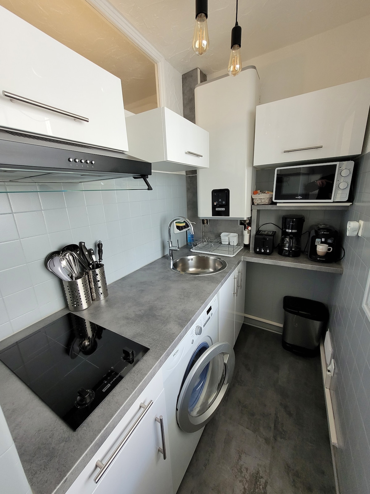 Situé à Fréjus plage joli T1 de 28m2 avec loggia au 2eme étage avec ascenseur dans une petite résidence sécurisée , entièrement rénové, très agréable pour 2 adultes et éventuellement 1 enfant .A seulement 700 mètres de la plage proche des commerces de proximité (boulangerie, presse, pharmacie, supermarché) vous pourrez profiter des marchés nocturnes, animations, parc aquatique, luna parc, Casino de jeux, concerts, restaurants, et de nombreux commerces... Au plaisir de vous accueillir.