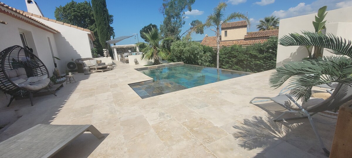 🌞 Velkommen til vår sjarmerende annex på 42m², midt i en frodig eiendom, omgitt av mange turistattraksjoner i Var-regionen 🏞️! Dette lille fredelige tilfluktsstedet, omgitt av en frodig hage 🌸, tilbyr deg en idyllisk ramme for oppholdet ditt. Med en komfortabel og nøye planlagt boareal 🛋️, vil du også ha eksklusiv tilgang til vårt forfriskende svømmebasseng 🏊♂️. Et lite paradis for uforglemmelige minner 🌟!