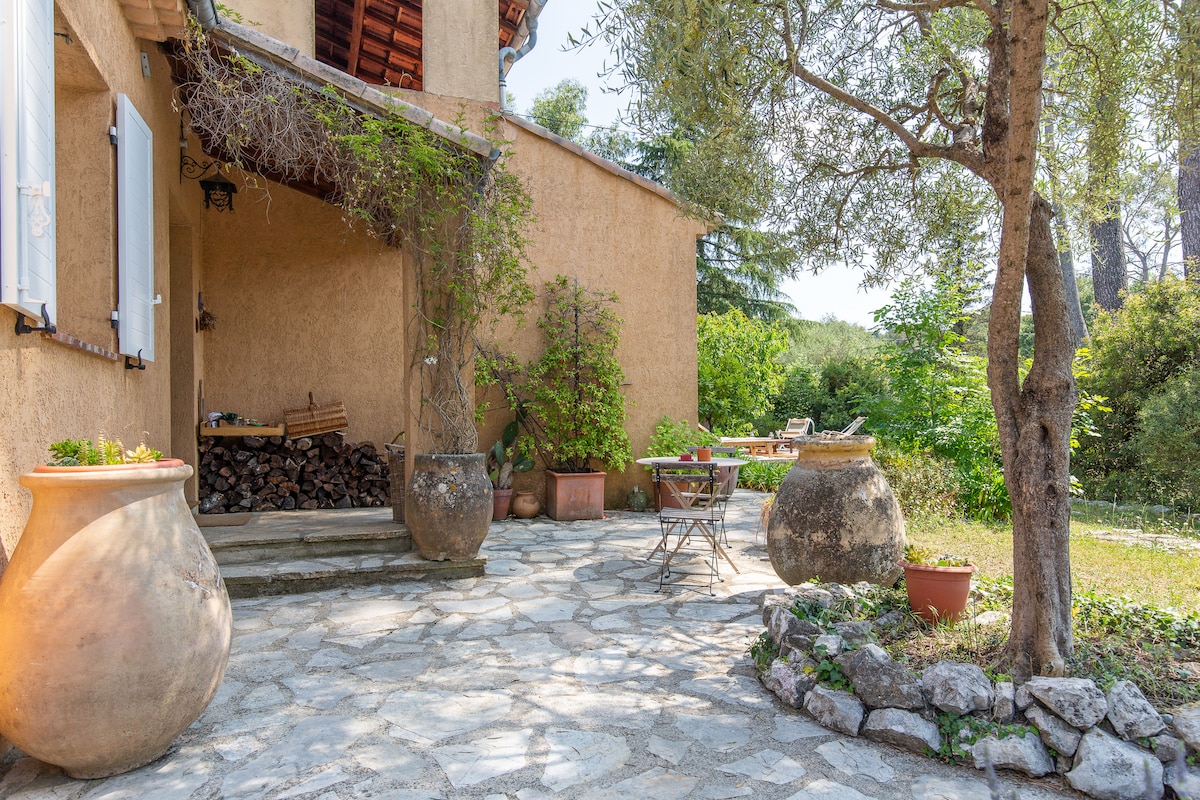 Charmant studio climatisé indépendant dans villa de charme au cœur de la nature roquefortoise. Accès libre à la piscine, table de ping pong, jardin et terrasse privative avec barbecue. Logement ideal pour un couple. Restaurants et commerces proches, de nombreux golfs à proximité, situation idéale entre Valbonne et st Paul de vence pour visiter la côte d'azur et son arrière pays. 20 mn de l' aéroport de Nice. Ambiance conviviale et chaleureuse .
