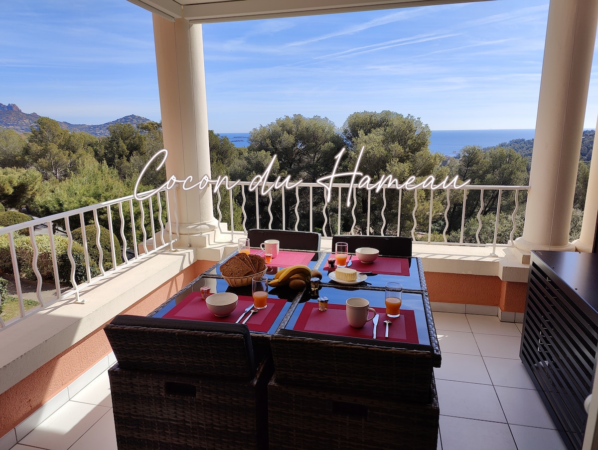 Cap Esterel、Studio Green Apple、花园、海景