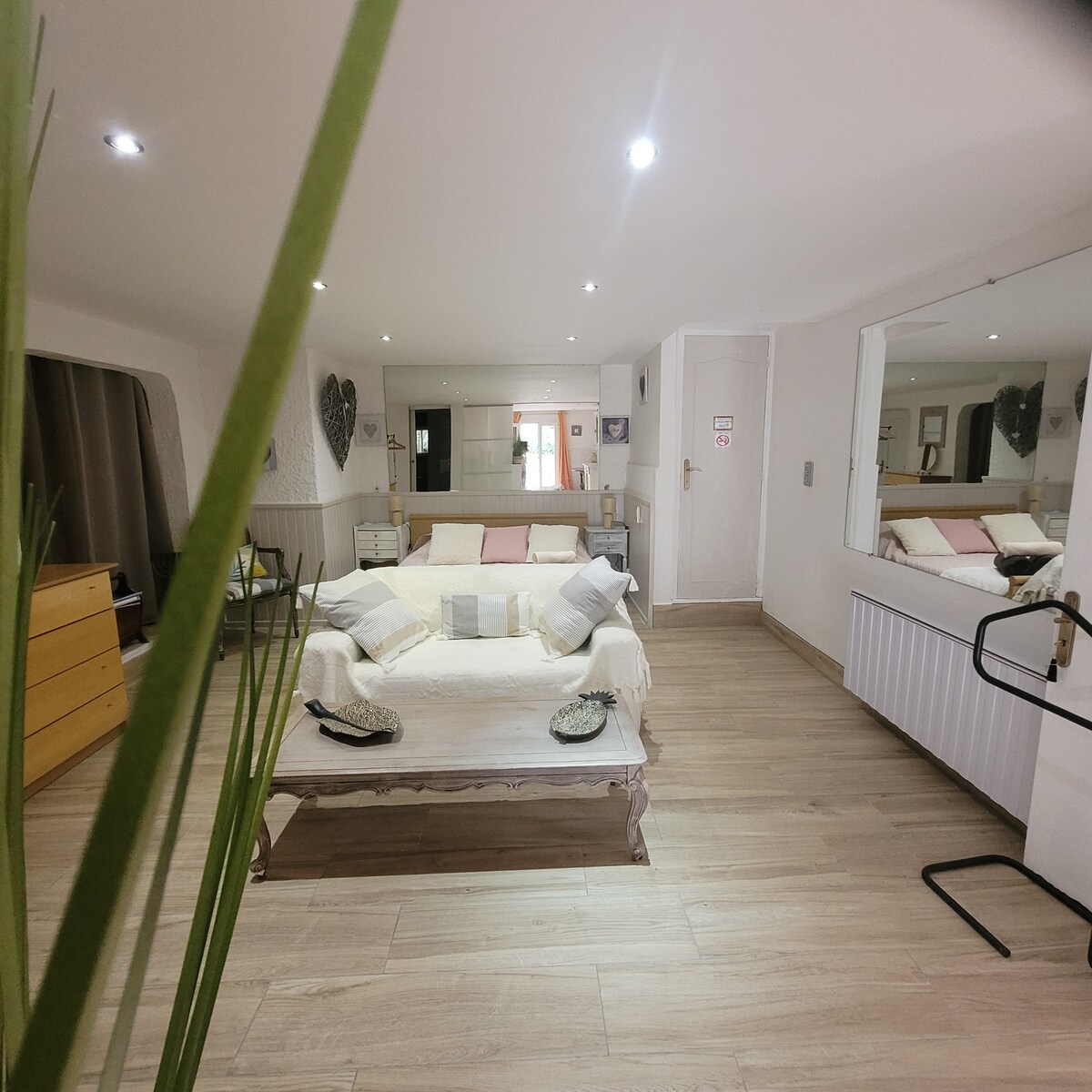 Air-conditioned apartment for 4 with private entrance and parking in a villa. Enjoy a private saltwater pool, quiet and out of sight. Two bedrooms, bathroom, equipped kitchenette. Secure parking with EV charger (optional). Breakfast available. Perfect base to explore Saint-Raphaël, Saint-Tropez, Cannes, Nice, and Monaco.