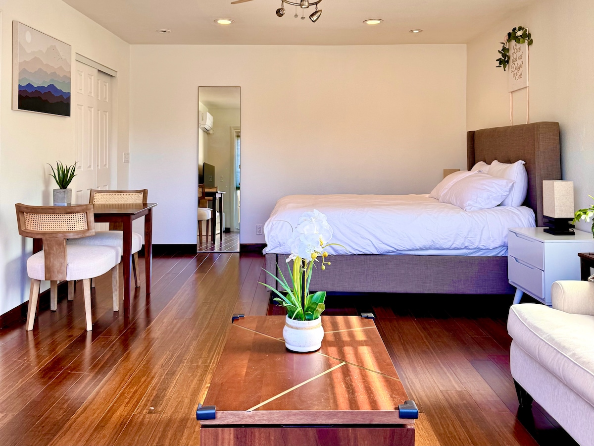 This is a light, bright, and cheerful unit that is conveniently located in the heart of Downtown Millbrae. With high vaulted ceilings and modern decor, this space is perfect for any discerning travelers who wish for a comfortable environment to stay. -Less than a minute walk and you will arrive at Safeway, Starbucks, Trader Joes, and more. -5 minute drive to Burlingame Mills Peninsula Medical Care -5 minute drive to the Millbrae Caltrain, Bart station, and SFO.