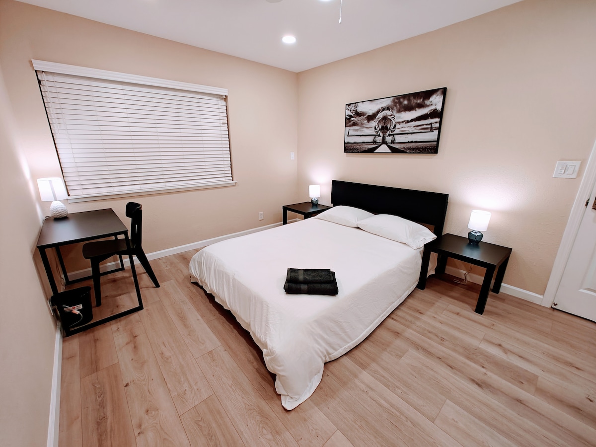 Welcome to The Modern Comfort Cottage ! It is located in a safe and friendly neighborhood in San Leandro, just a 5-minute drive to Downtown and the BART station, 15minutes to the Oakland International Airport, 30 minutes to San Francisco. Enjoy modern conveniences including an in-unit washer and dryer for your convenience. Parking is easy with provided parking spaces, and street parking is also available. Stay in this newly renovated cottage for a comfortable living experience. Enjoy and unwind!