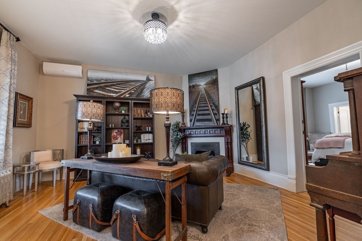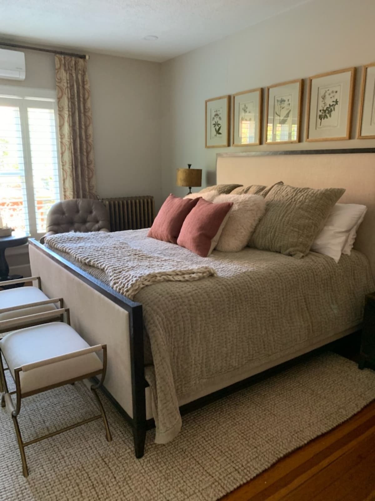 Beautifully renovated throughout, our farmhouse meets restored Victorian dream home features four perfectly appointed King bedrooms - each of which are furnished with Restoration Hardware beds, luxury bedding and comfortable lounge chairs. Of course, each bedroom has a unique lock and key so you can secure your space. Your Golden Gate Canyon King bedroom is on the second floor & has a dedicated bathroom down the hall.