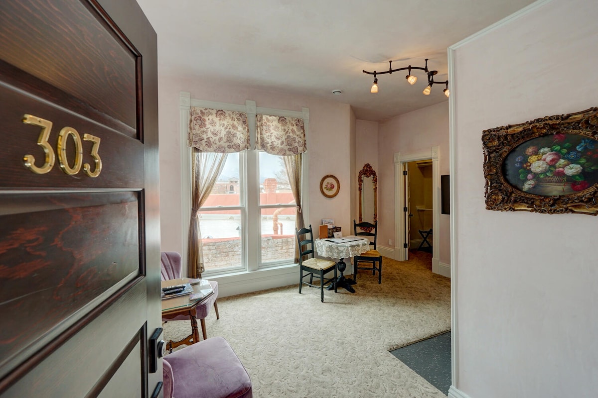 Unforgettable getaway in the historic Palace Hotel with updated modern furnishings and decor. Amazing views from room of Tenderfoot (S) Mountain. Located in the heart of historic downtown Salida - steps away from dining, shopping, breweries, the Arkansas River and more. Enjoy easy access to Colorado's outdoor recreation including a 25 min drive to Ski Monarch Mountain and multiple famous hot springs including a 20 min drive to Mt. Princeton. 1 Bed + 1 bath in a privately owned condo .