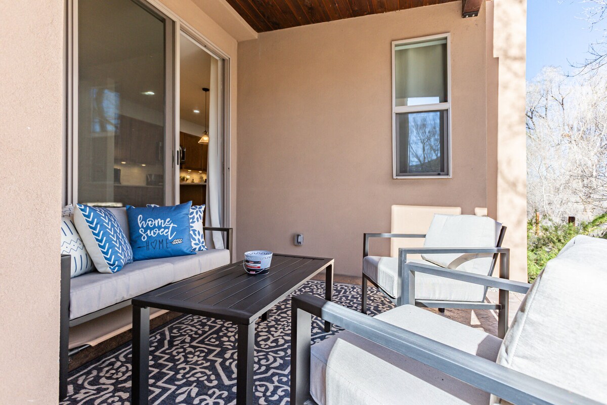 Southwest style condo perfect for two couples or a family. Within walking distance of downtown which is ideal for exploring Salida, floating the Arkansas River or biking S mountian. Cozy tv/sitting room, with full kitchen and dining area. Upstairs bedrooms for peace and quiet and full bathroom. Two outdoor patio areas, one of which is gated for secure bike/boat storage and privacy. Onsite free washer/dryer.