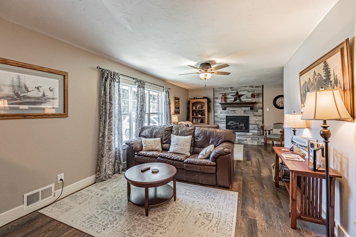 Kick back and relax in this calm, modern and stylish space. The home features a dramatic floor to ceiling fireplace for those chilly mountain evenings. You will enjoy the amazing view of the Teton Mountain Range out the 2 sliding glass doors. The living room has 2 cozy recliners and a sofa sleeper for relaxing and watching tv. Beautiful open concept Kitchen and eat in Dinning room for cooking in. The main and second bedroom feature queen bed and the living room has a sofa sleeper.