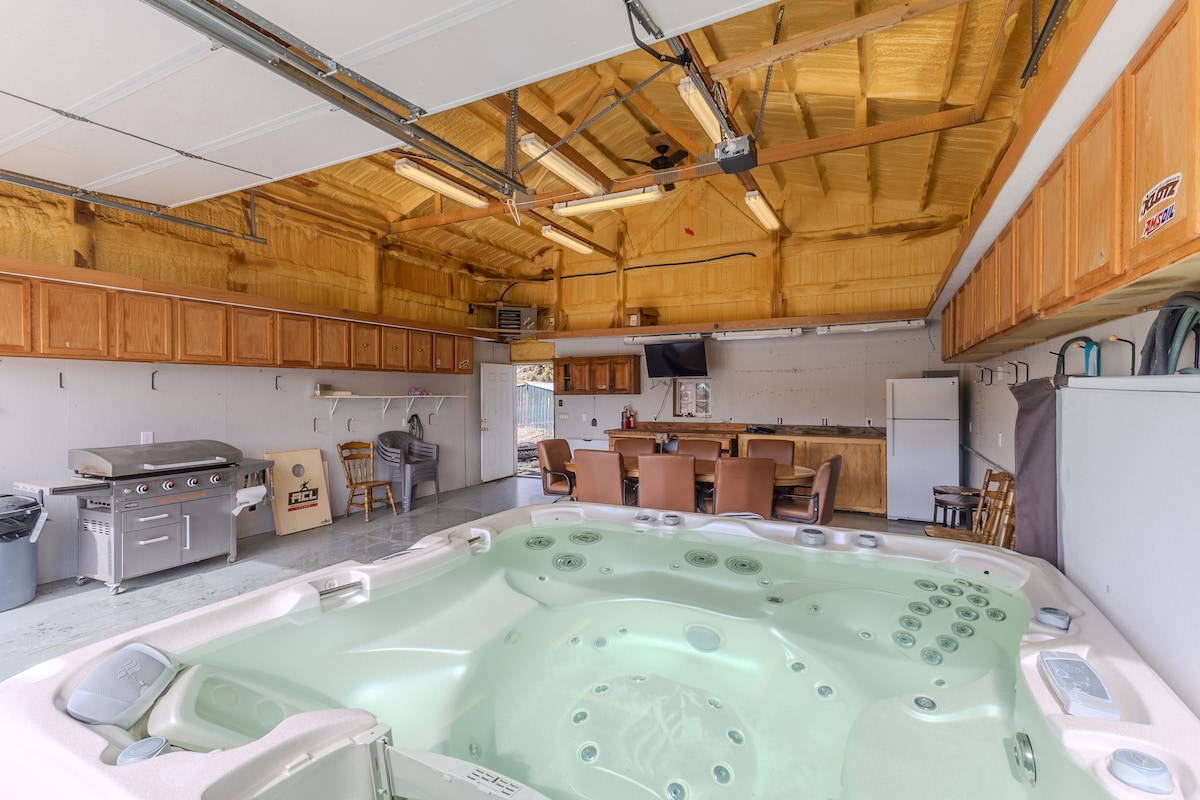 The Hideout is a luxurious cabin on the Big Horn River with a boat ramp approximately one block away. You’ll love the deck, outdoor bar, fire pit table and hot tub overlooking the river. It has a secluded mountain cabin feel, all right next to the world's largest hot springs for family fun in the sun. Plus, you have all the comforts of home. The Hideout is more than just a place to stay its an experience. A grocery store, restaurants and a bars are close as well.