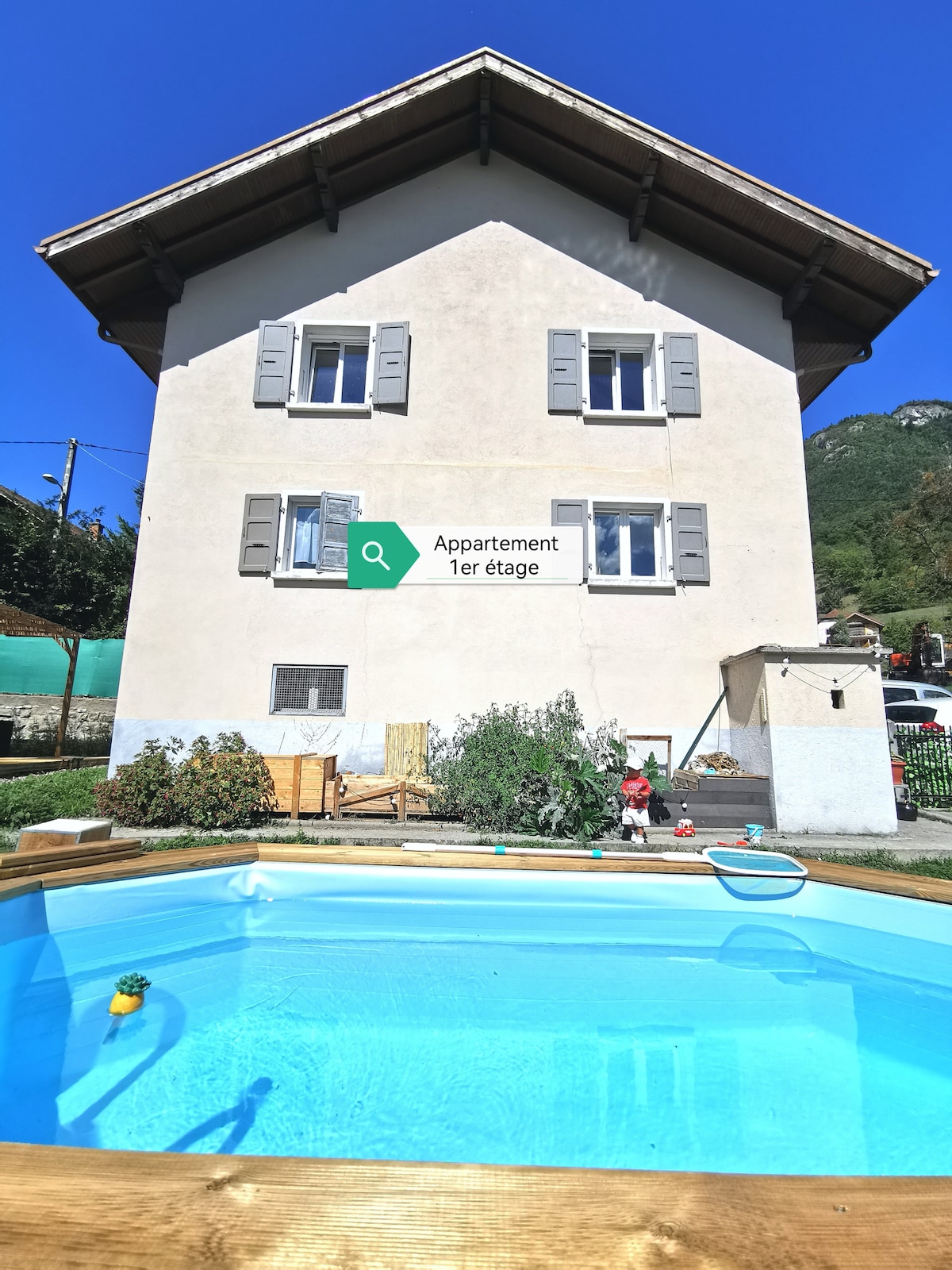 🏡 a No disturbance, private stay in Gîte La Grange Doman, an APARTMENT BELOW THE COVERED TERRACE OF OUR QUIET HOUSE (see Patio photos) located at 1050m altitude with Direct view of Chamechaude, highest peak in Massif de la Chartreuse We're 25km from Grenoble, 42km from Chambery in a small hameau surrounded by fir trees, green pastures & Mt Charmant Som Our 50m² apartment in a 3500m² property has direct hiking trails to 2 peaks mentioned above ➡️💌NOTE: If 3 or more guests, check Bedroom-2 beds