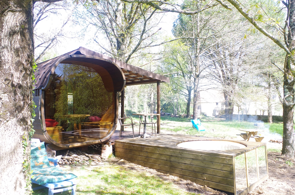Niché en bordure de forêt pyrénéenne, le Dôme du Haut-Béarn offre une escapade insolite et immersive en pleine nature. Ce dôme géodésique unique allie confort et évasion, avec un jacuzzi en plein air, un sauna privatif et une vue imprenable sur une nature préservée. Ici, le calme règne en maître, Idéal pour se ressourcer, ce lieu propose également multitude d’activités de loisirs, entre détente, aventure et contemplation. Un véritable havre de paix pour les amoureux de nature et d’authenticité.