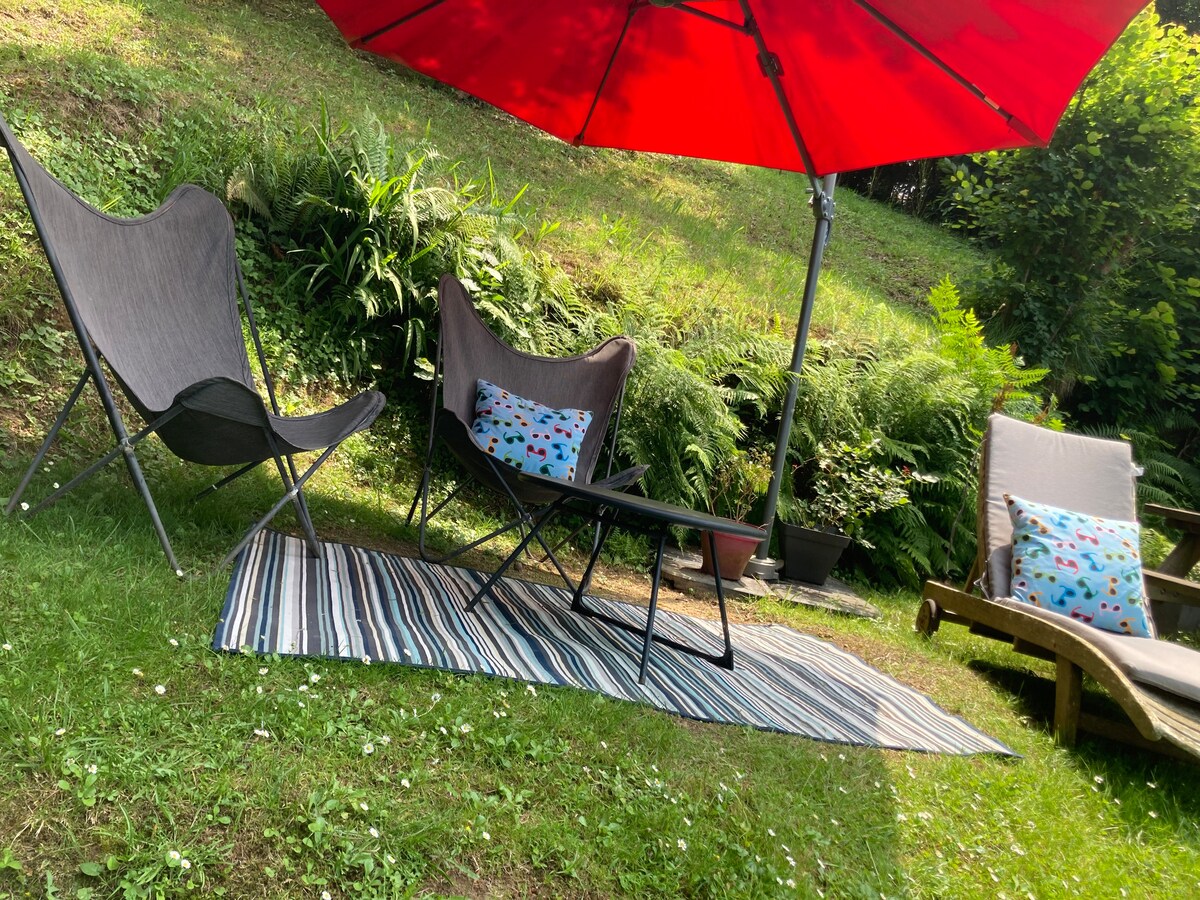 Located in the garden of my home, you access through the garden to this pretty house, 19 m2, in a green setting, with a private furnished terrace, sunny and in complete privacy. It's just one room, it's small, cozy, comfortable and functional, everything is there! Murphy bed, bathroom with walk-in shower and toilet. Reversible air conditioning. Rolling shutters on all windows. In the fridge and cupboards you will find breakfast and basic products