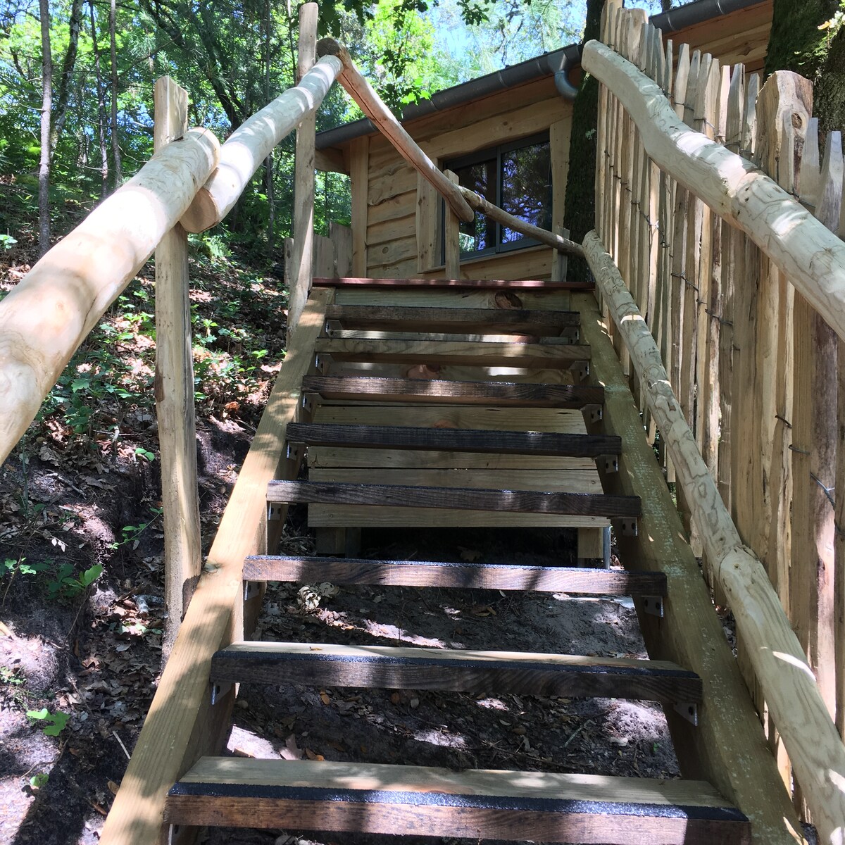 C’est une cabane au milieu d'une forêt de Douglas. Elle comprend un lit double en mezzanine qui donne sur la forêt et un autre lit 1 place. La terrasse vous permettra de profiter de la forêt en dégustant un apéro puis un dîner au rythme que vous souhaitez. La cabane comprend : des toilettes sèches une douche plein air chaude un bain norvégien un coin plancha au gaz. du bois pour les poêles. Les draps sont fournis. Les serviettes sont fournies sur demande à partir de 2 nuits.