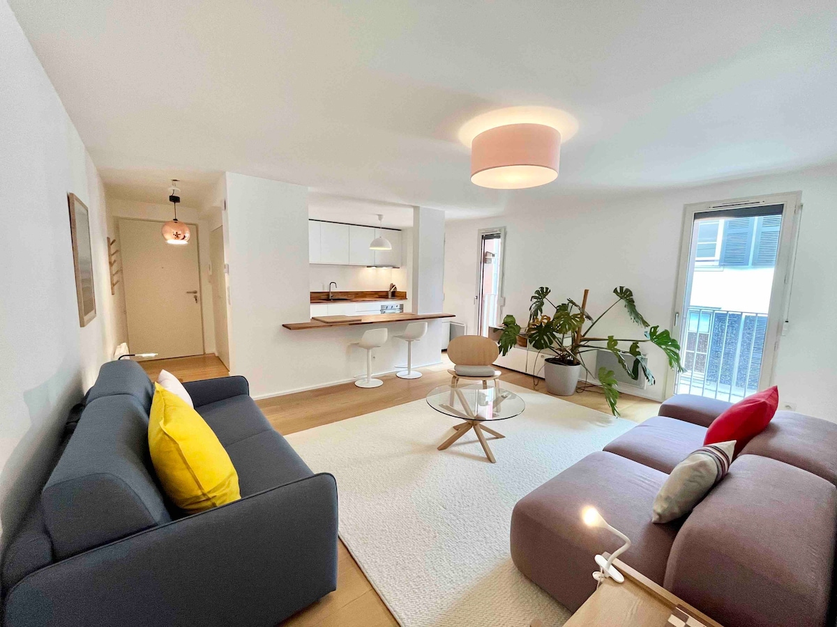 Appartement de 52m² dans une résidence sécurisée. Idéalement placé dans l'hypercentre, vous pourrez tout faire à pied. Tous les commerces au pied du logement et la Cathédrale de Bayonne est à deux pas. Il dispose d'une chambre et d'une belle pièce à vivre avec cuisine ouverte. Accueil de 2 voyageurs. C'est l'appartement idéal pour des vacances exceptionnelles au Pays Basque! Entre farniente, visites et activités sportives (surf, balades, randos), tout est réuni pour un séjour exceptionnel.